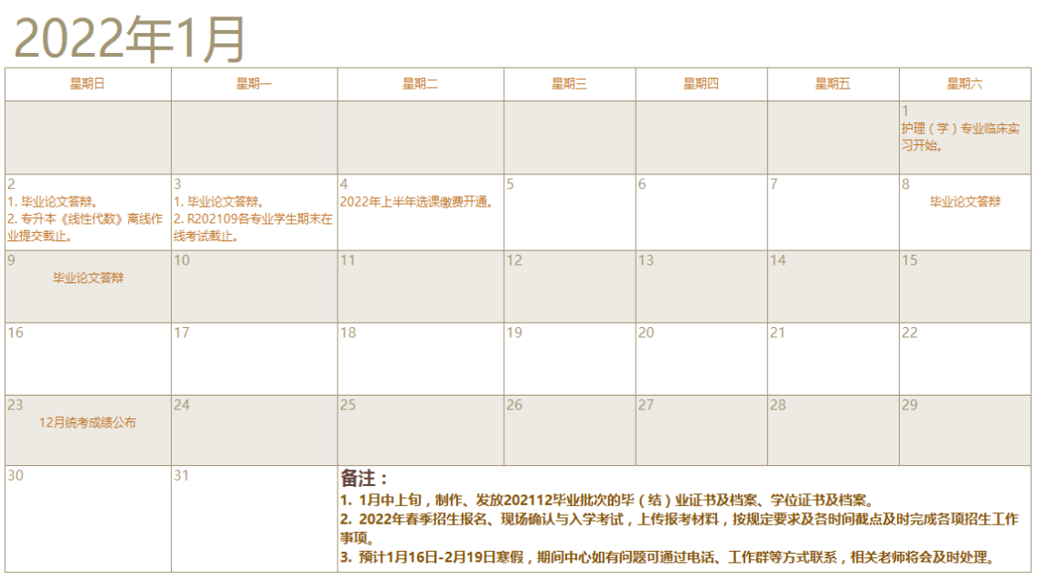 厦门大学2022年1月学习支持服务工作日历-尊龙凯时人生就是搏